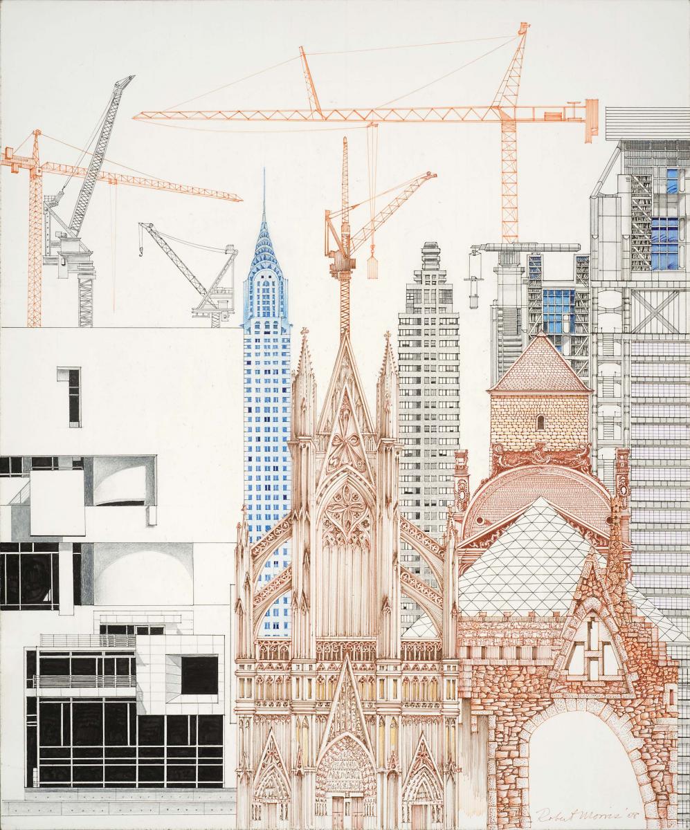 This is just plain fun. Making buildings that exist, just piling them on - stone and glass and concrete out of control. And the cranes mean that they will just continue on and on. Even the crazy cranes are part of the architecture - you would think they would all get in each others way.